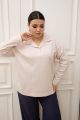 Женский сиреневый трикотажный свитшот-поло большого размера от бренда Modress (Модресс). Свитшот свободного прямого кроя и воротников поло