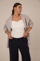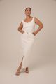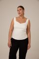 Женский молочный облегающий, приталенный топ больших размеров от бренда Modress (Модресс). Топ с фигурным вырезом на широких лямках, из хлопкового трикотажа в двух цветах черном и молочном.