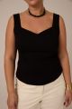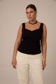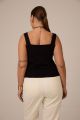 Женский черный облегающий, приталенный топ больших размеров от бренда Modress (Модресс). Топ с фигурным вырезом на широких лямках, из хлопкового трикотажа в двух цветах черном и молочном.