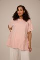 Женская розовая футболка большого размера c необработанными краями от бренда Modress(Модресс). Футболка А-силуэта, свободного кроя со спущенным рукавом. На полочке выполнены накладные карманы