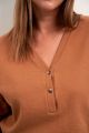Женская коричневая хлопковая блузка большого размера в стиле поло от бренда Modress (Модресс). Блузон свободного кроя со спущенным плечом.