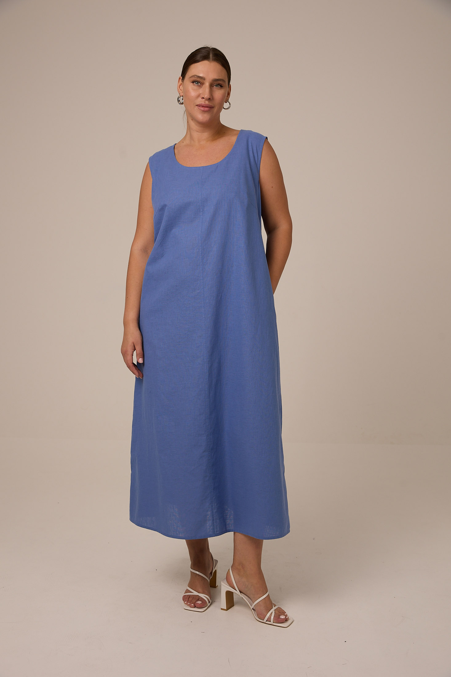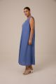 Женское льняное голубое макси платье большого размера от бренда Modress (Модресс). Платье А-силуэта, по низу спинки широкий притачной волан. Платье из натурального 100% крэшированного льна (эффект жатки).