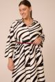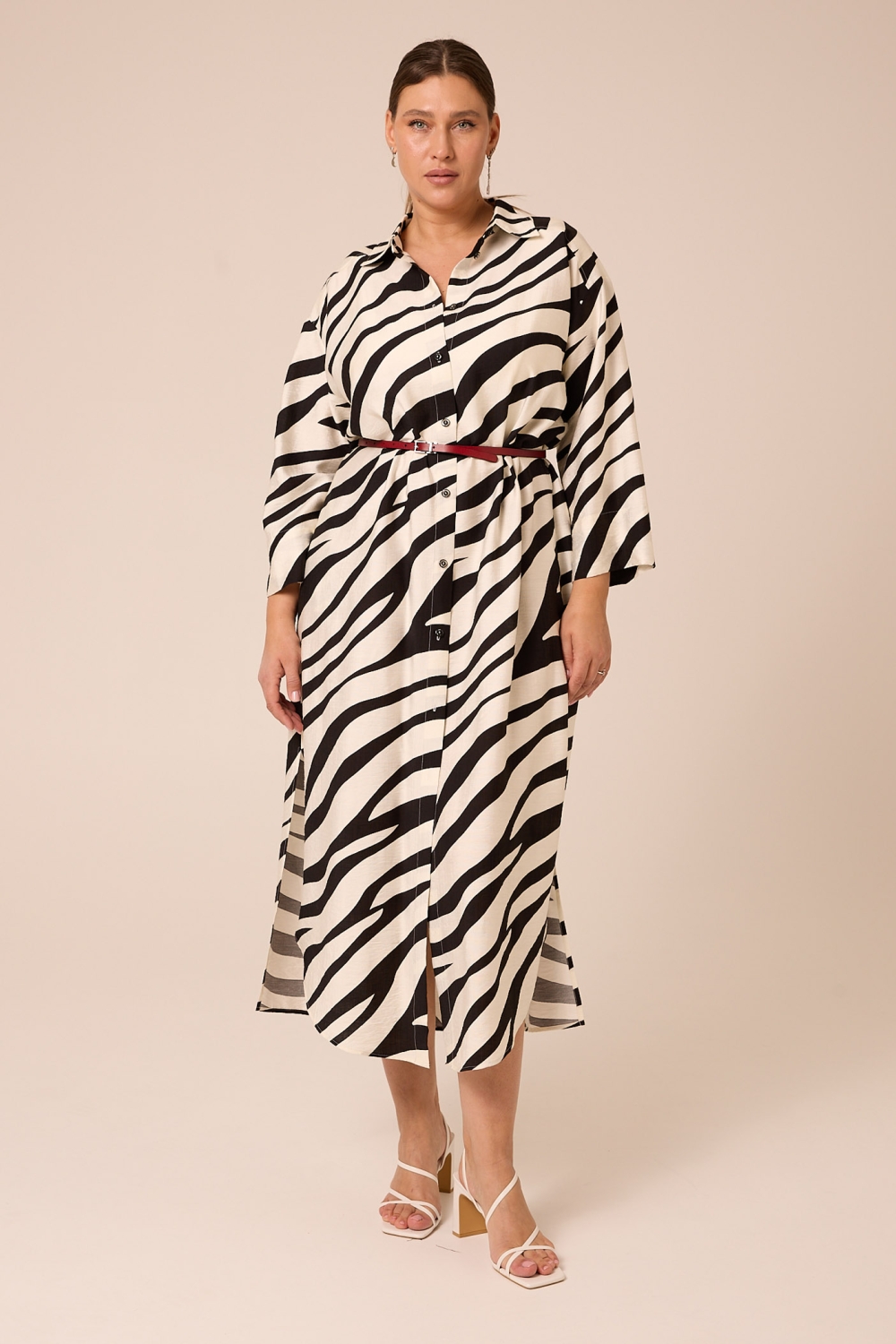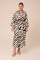 Женское черно-белое платье-рубашка большого размера из вискозы от бренда Modress (Модресс). Платье-рубашка свободного кроя, со спущенным плечевым поясом. Рукава прямые, без манжет, длиной 7/8.