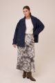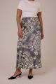 Женская серая с принтом расклешенная макси юбка большого размера из вискозы от бренда Modress (Модресс). Пояс притачной, с эластичной тесьмой внутри и шнурком.