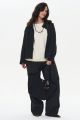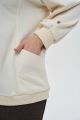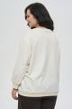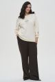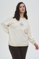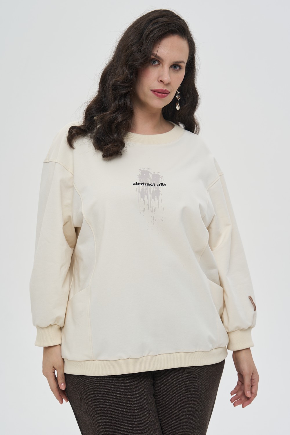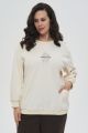 Женский молочный джемпер БЕЛЯШ из футера Интикома (Intikoma) - одежда больших размеров для женщин. Джемпер прямого свободного силуэта, Спущенное плечо, перед и спинка с вертикальными рельефами, накладные карманы, горловина лодочка с бейкой из кашкорсе, длинные рукава с манжетой.