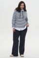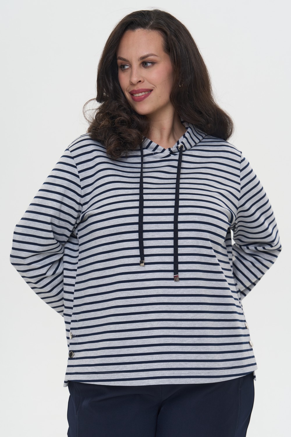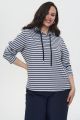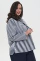 Женское синий джемпер ПОРТМАН Интикома (Intikoma) из хлопкового трикотажа в полоску - одежда больших размеров для женщин. Прямой силуэт, чуть спущенная линия плеча, длинные рукава и разноуровневый низ изделия со шлицей на пуговицах в боковых швах.