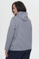 Описание: Женское синий джемпер ПОРТМАН Интикома (Intikoma) из хлопкового трикотажа в полоску - одежда больших размеров для женщин. Прямой силуэт, чуть спущенная линия плеча, длинные рукава и разноуровневый низ изделия со шлицей на пуговицах в боковых швах.