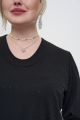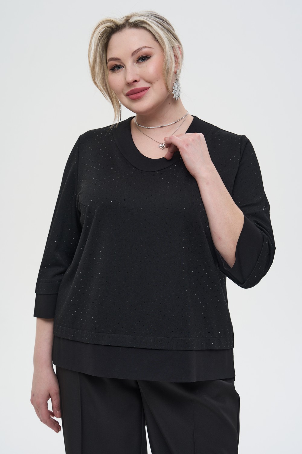 Женский черный джемпер ШИПЕР Интикома (Intikoma) - одежда больших размеров для женщин. Джемпер прямого силуэта. Выполнена из сочитания двух фактур и текстур джерси, мерцающая фактура деликатно переливается при движении, добавляя образу изысканности, а матовая текстура черной джерси служит элегантным фоном.