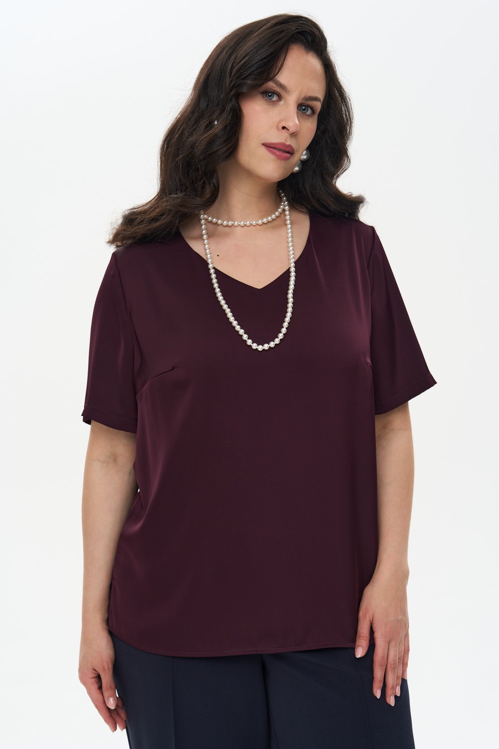 Женская бордовая атласная блузка ПИАФ Интикома (Intikoma) - женская одежда больших размеров. Прямой силуэт придаёт уверенность и комфорт в каждом движении. V- образный вырез горловины.