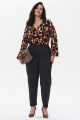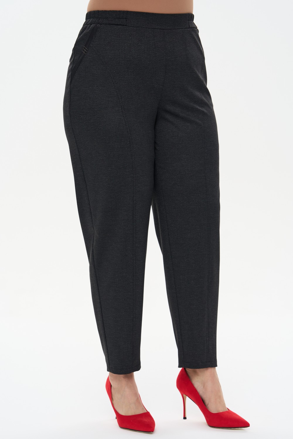 Женские серые брюки-бананы ДЗИНТАРС Интикома (Intikoma) - одежда для полных женщин. Отсутствие застежки и пояс, частично выполненный на резинке, гарантируют идеальную посадку и удобство в носке.