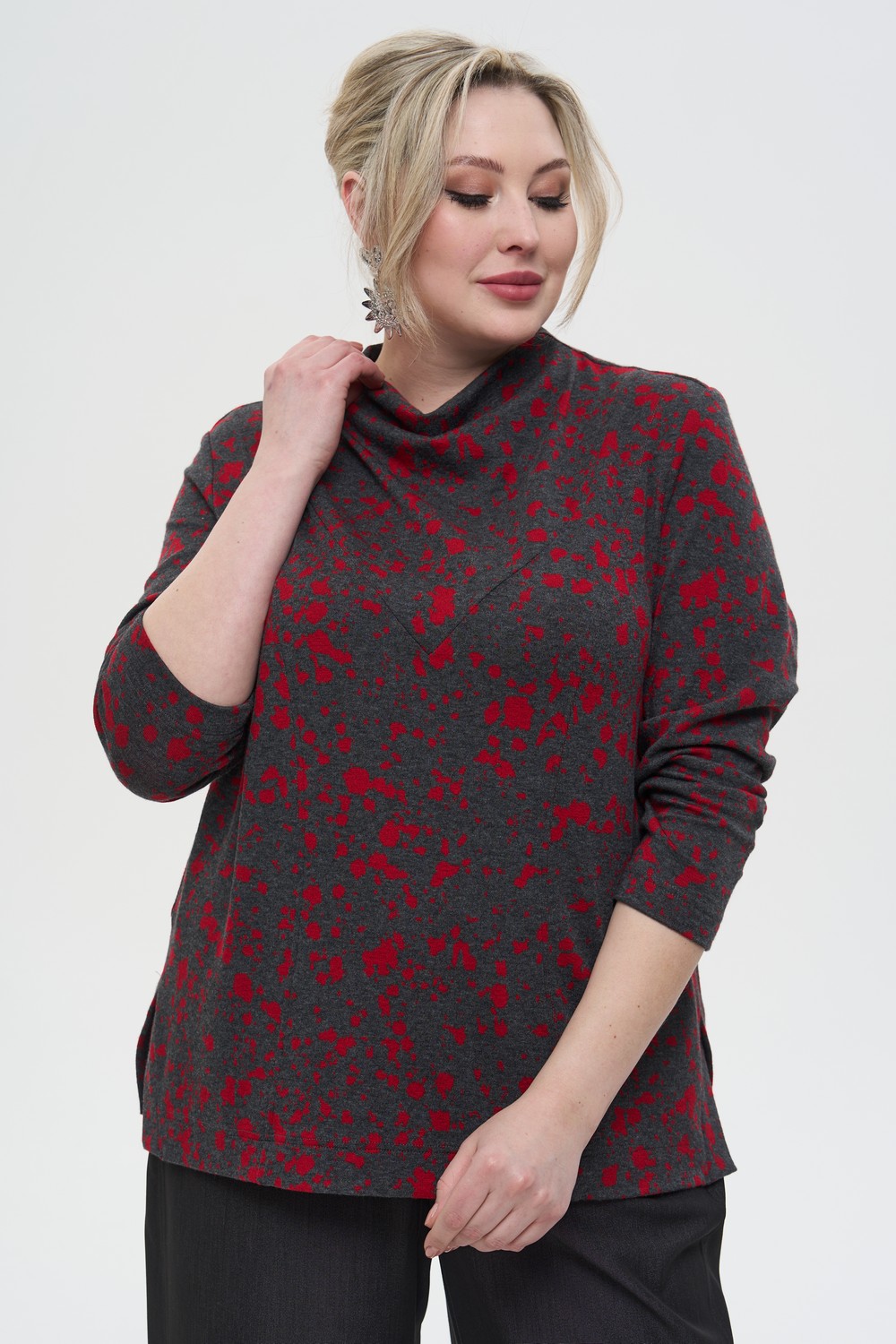 Описание: Женский красный с принтом трикотажный джемпер КЬЯНТИ Интикома (Intikoma) - женская одежда больших размеров. Теплый, приятный к телу материал согреет Вас в прохладную погоду. Свободный прямой крой, слегка спущенной плечо, длинный рукав. Разрезы в боковых швах. Воротник мягкая стойка.