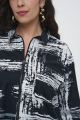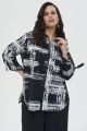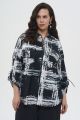 Женская черная с принтом хлопковая блузка ДРАЙВ Интикома (Intikoma) - женская одежда больших размеров. Выполнена из натурального хлопка, который комфортен в любую погоду. Прямой силуэт, фигурные разрезы по бокам подходят под любые формы и типы фигуры. Рукав укороченный с патой для регулирования длины рукава. По спинке кокетка.