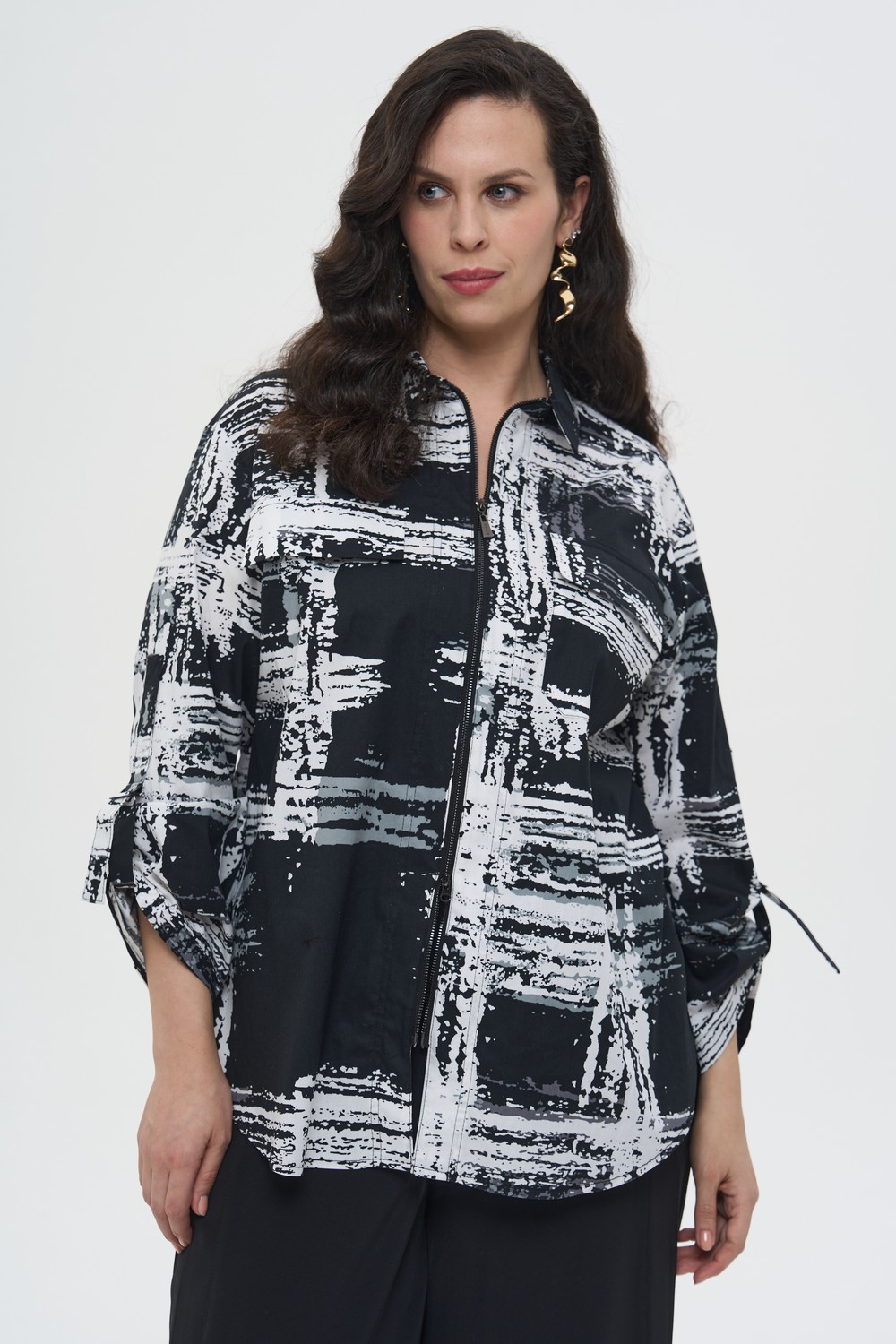 Описание: Женская черная с принтом хлопковая блузка ДРАЙВ Интикома (Intikoma) - женская одежда больших размеров. Выполнена из натурального хлопка, который комфортен в любую погоду. Прямой силуэт, фигурные разрезы по бокам подходят под любые формы и типы фигуры. Рукав укороченный с патой для регулирования длины рукава. По спинке кокетка.