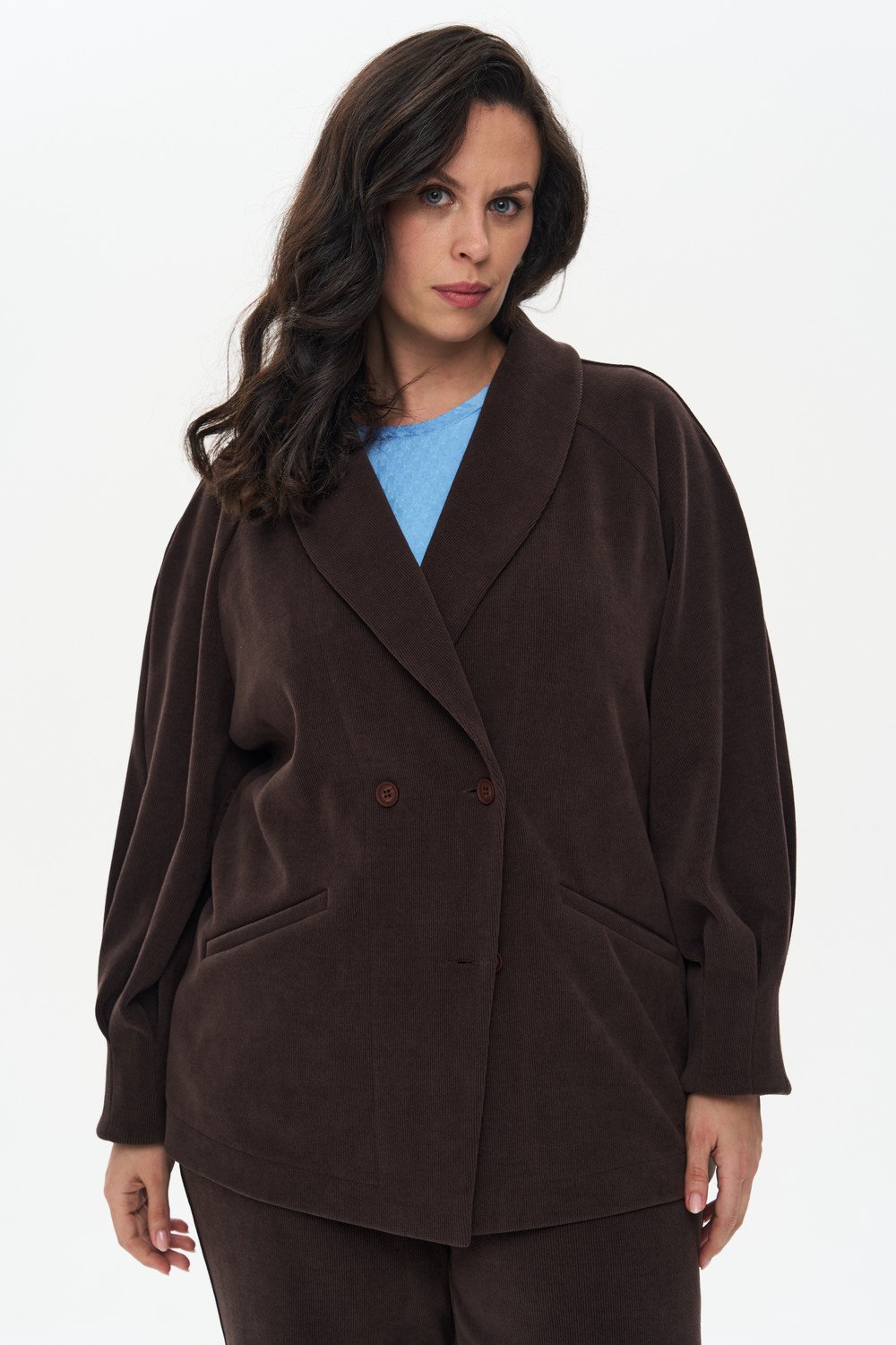 Женский коричневый вельветовый жакет ШОКОЛАД Интикома (Intikoma) - женская одежда больших размеров. Жакет с поясом, полуприлегающий силуэт, рукав реглан. Застежка на три пуговицы, карманы прорезные с листочкой. Уместен как в повседневной жизни, так и в особых случаях особенно в тандеме с брюками Твикс 725526
