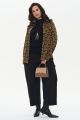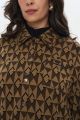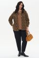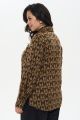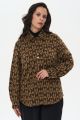 Женская коричневая с принтом трикотажная рубашка ФИЛГУД Интикома (Intikoma) - одежда для полных женщин. Рубашка с жаккардовым принтом. Малообъемный, полуприлегающий силуэт. Линия плеча на естественном месте и длинный широкий рукав на манжете с кнопкой. С рубашкой легко составлять многослойные образы в разных стилях.