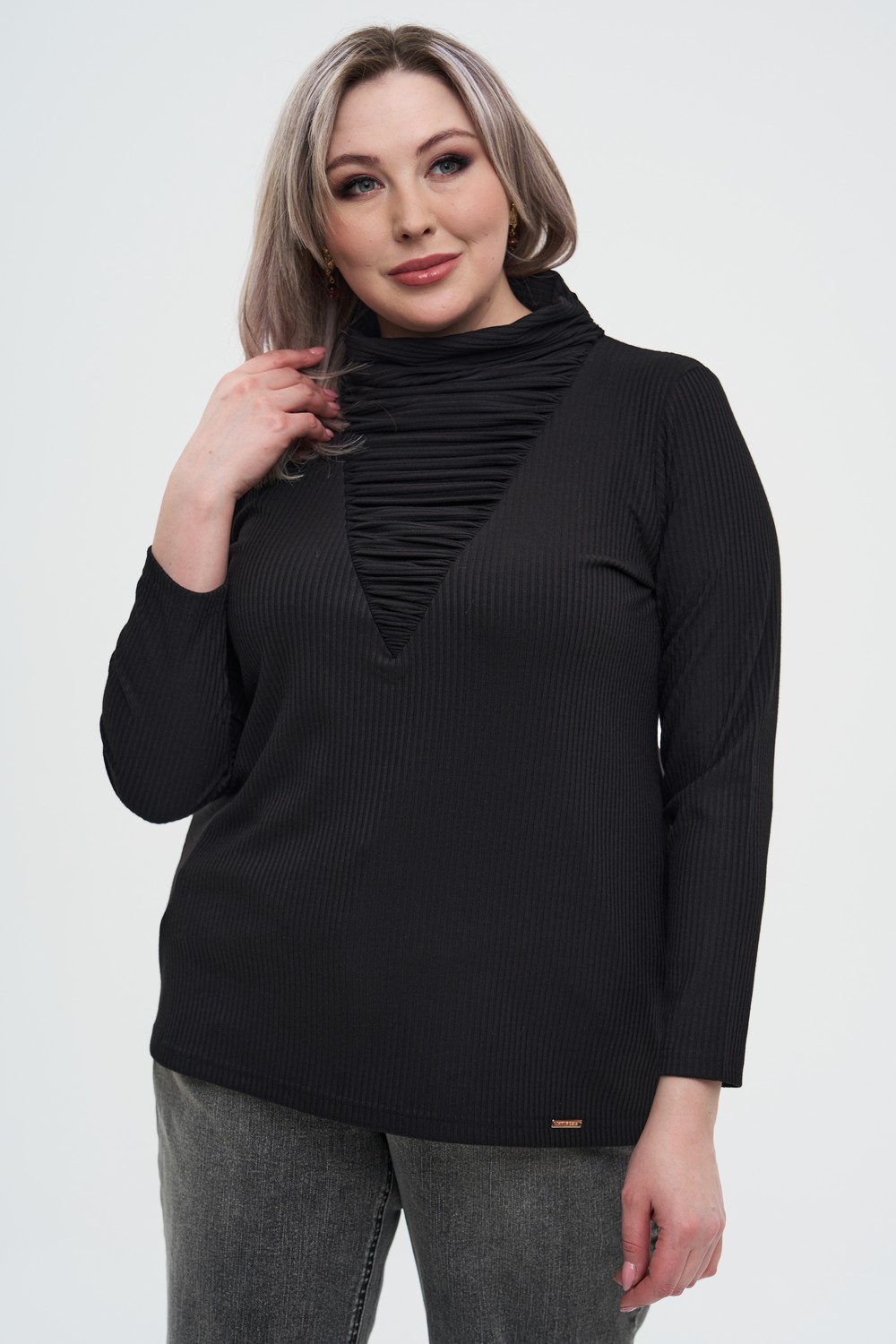 Женская черная трикотажная водолазка ЛАВИОРИ Интикома - женская одежда больших размеров. Водолазка в рубчик оригинального кроя из эластичной вискозы.