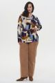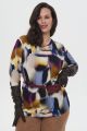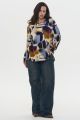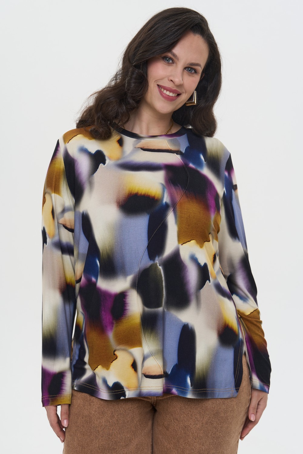 Женский разноцветный трикотажный лонгслив ВОСЕНЬ Интикома (Intikoma) - одежда для полных женщин. Лонгслив акварельной расцветки из гладкого вискозного трикотажа. Прямой свободный крой, в боковых швах по низу фигурные разрезы, спущенная линия плеча, длинный рукав, округлая горловина с бейкой.