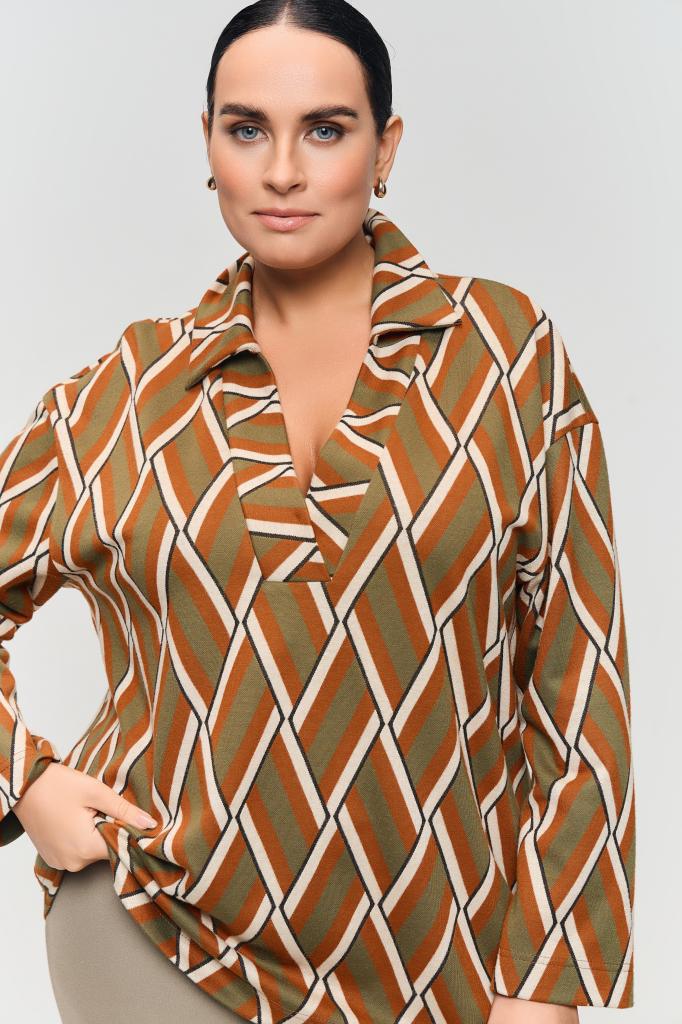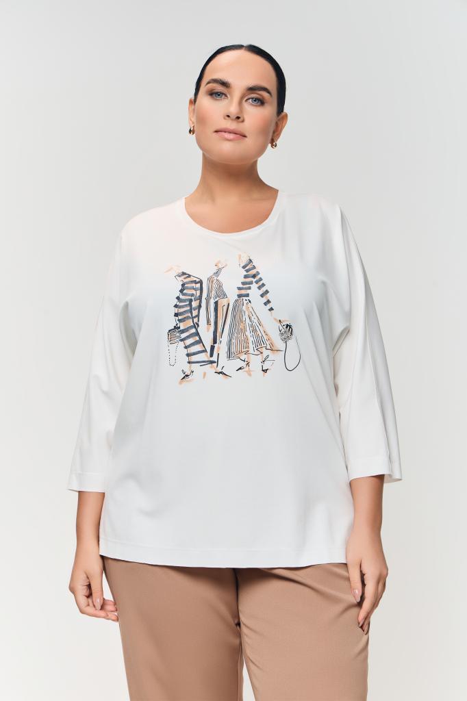 Описание: Женская молочная с принтом блузка-лонгслив СИТИ Терра (Terra) - женская одежда больших размеров.