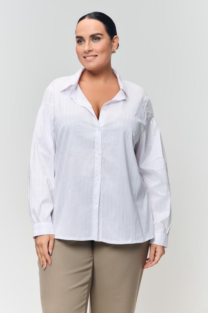 Описание: Женская белая в полоску классческая рубашка ТЕЙЯ Терра (Terra) -женская одежда больших размеров. РУбашка свободного кроя