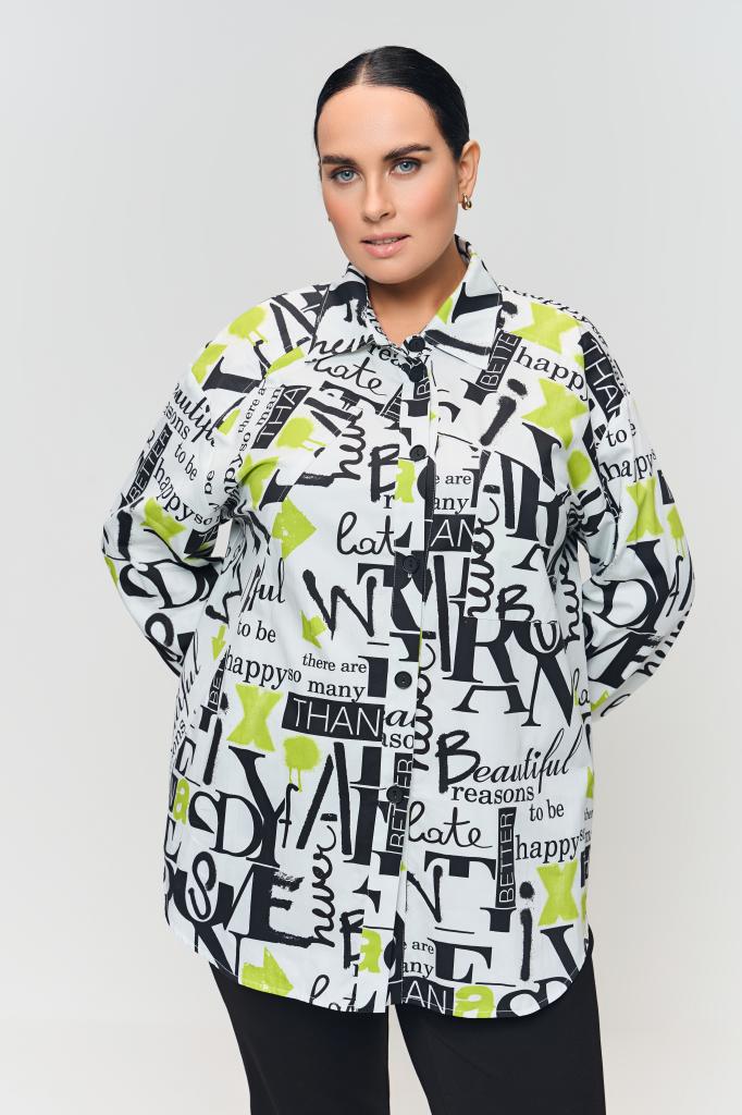 Описание: Женская разноцветная с принтом хлопковая рубашка ЭЛИТА Терра (Terra) - женская одежда больших размеров.