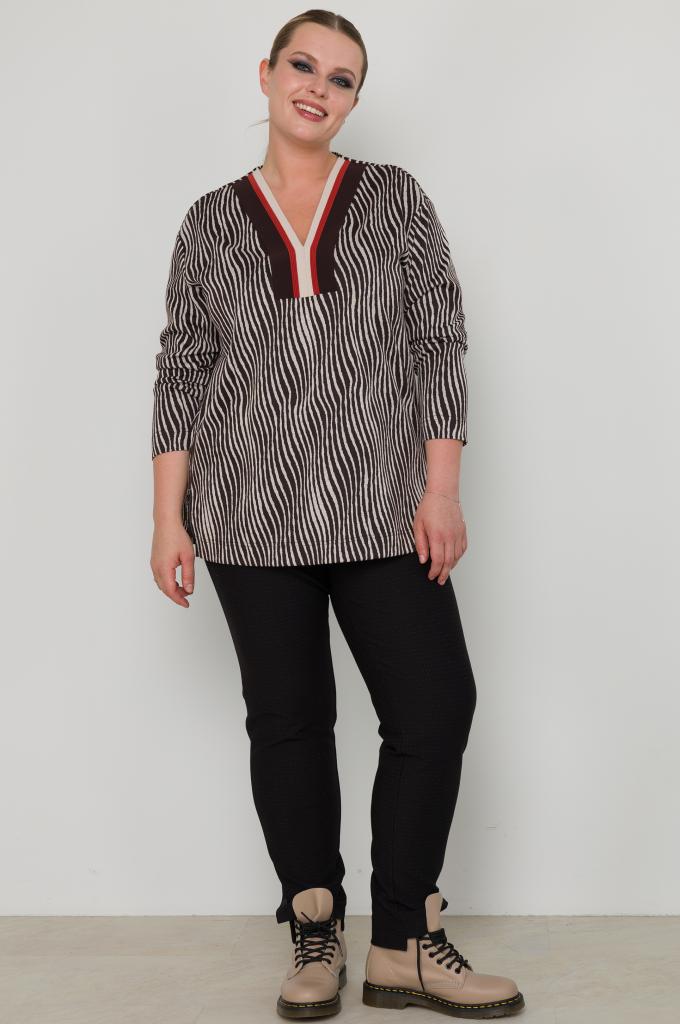 Женский коричневый с принтом зебра джемпер ГОРИЗОНТ Терра (Terra) - женская одежда больших размеров