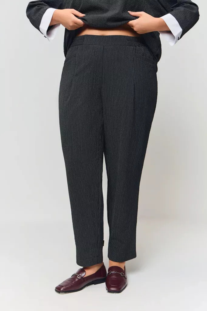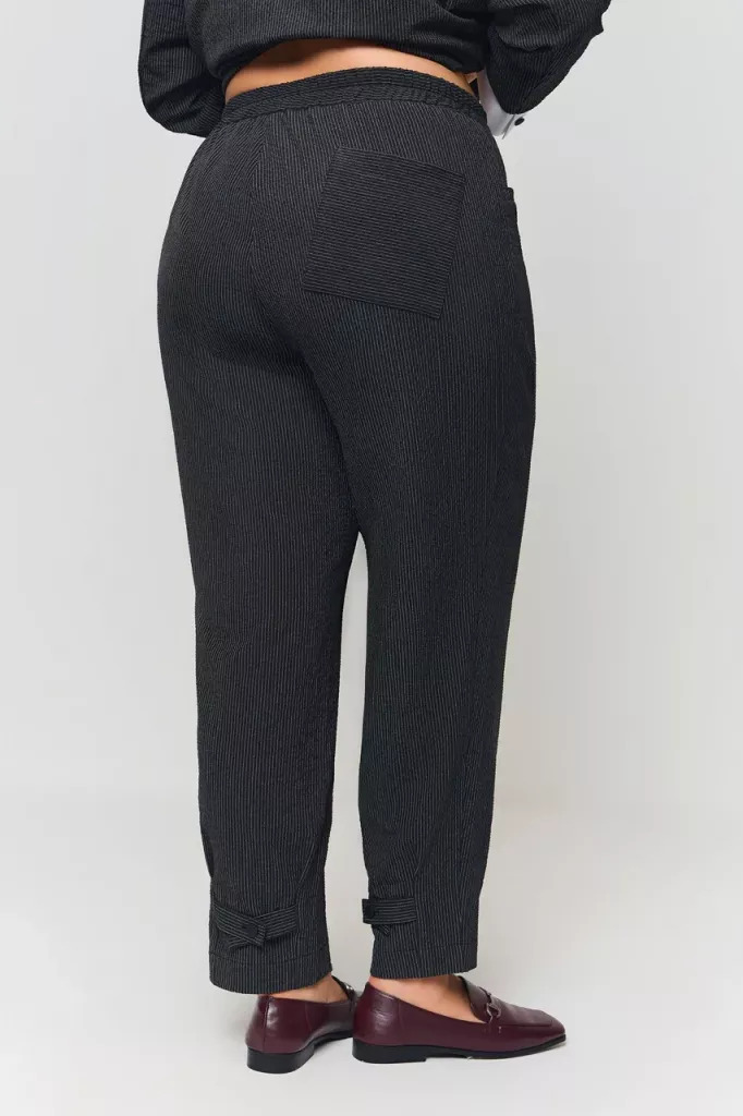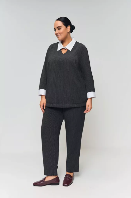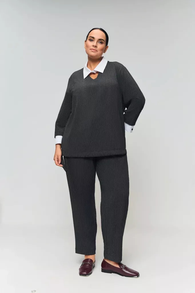 Женские черные в полоску брюки БОРНЕО Терра (Terra) - одежда для полных женщин. Отличный вариант для офиса. Стильный комплект можно собрать с блузой МИЛАНА ОК25-015