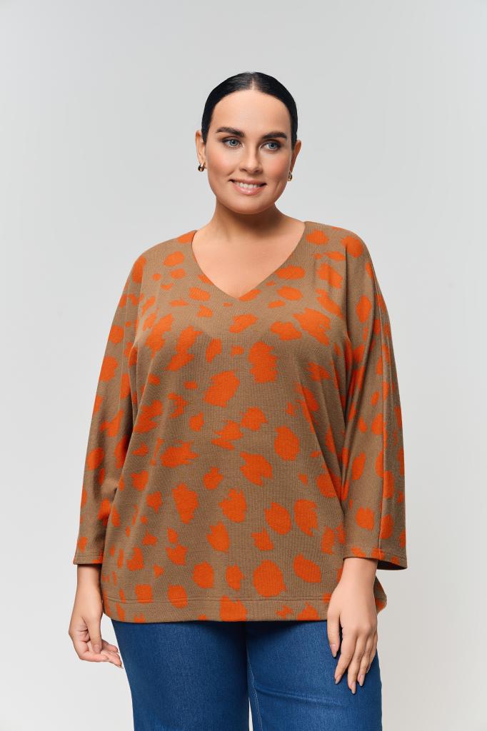 Женский бежевый с принтом джемпер большого размера ЗЛАТА Терра (Terra) - одежда для полных женщин