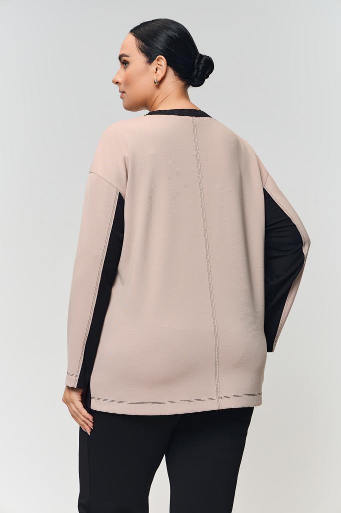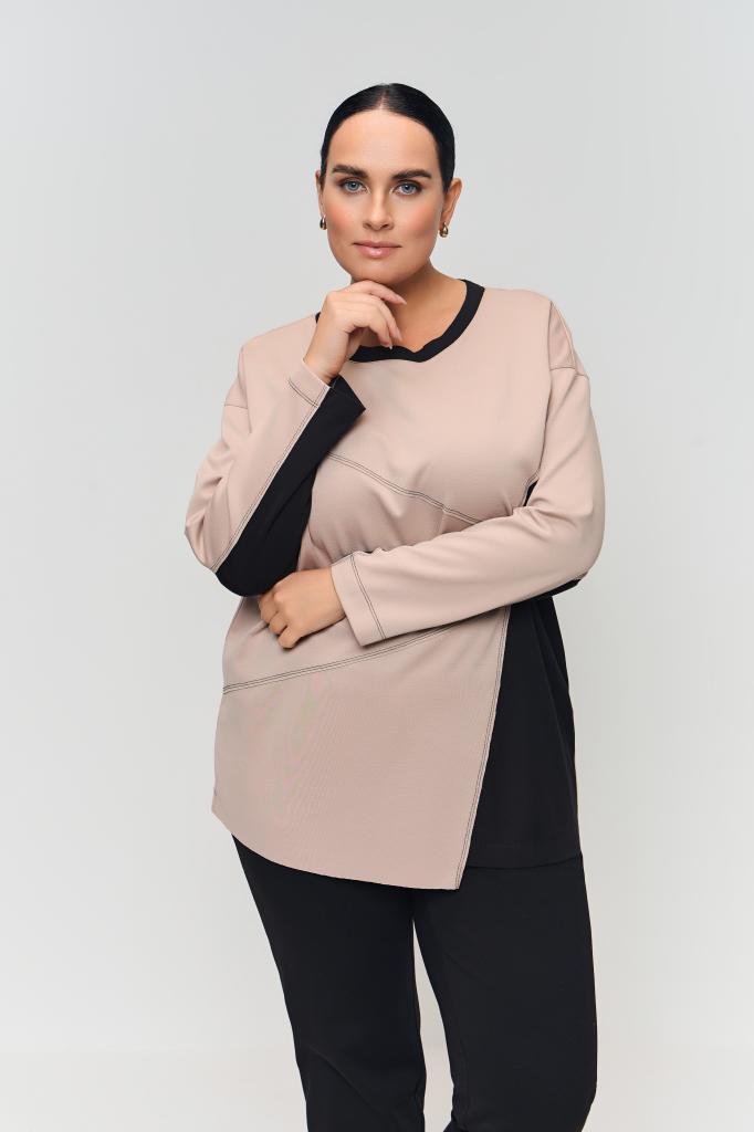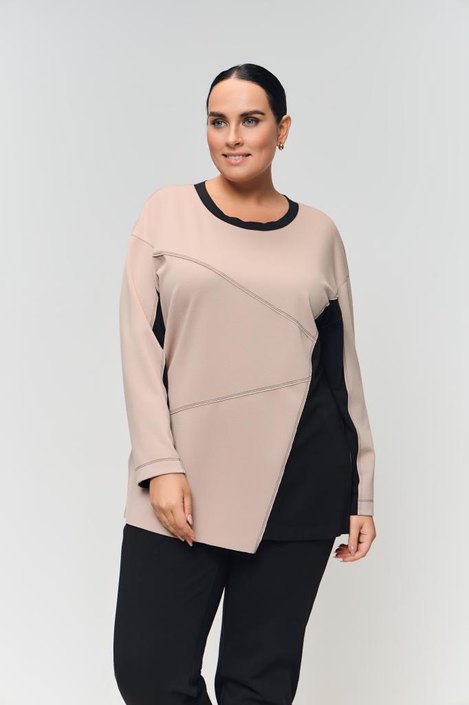 Описание: Женский бежевый с черным джемпер со спущенной линией плеча ЭММА Терра (Terra) - одежда для полных женщин