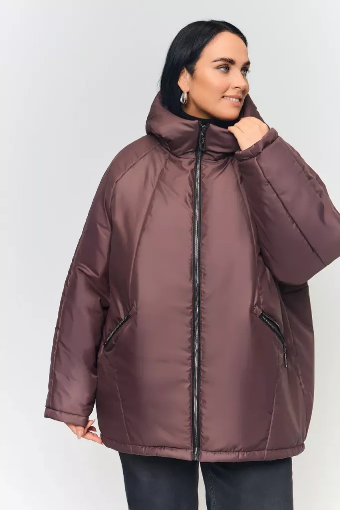 Описание: Женская зимняя шоколадная куртка большого размера свободного кроя от бренда Терра (Terra)
