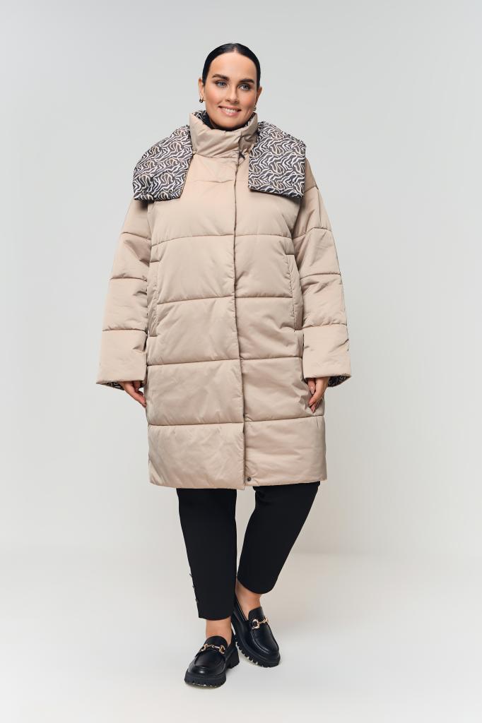 Описание: Женское бежевое осеннее пальто большого размера ФЬЮЖЕН Терра (Terra) - одежда для полных женщин