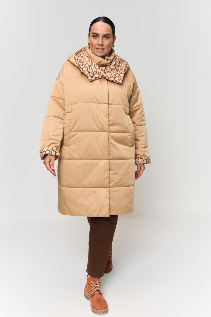 Описание: Женское песочное осеннее пальто большого размера ФЬЮЖЕН Терра (Terra) - одежда для полных женщин