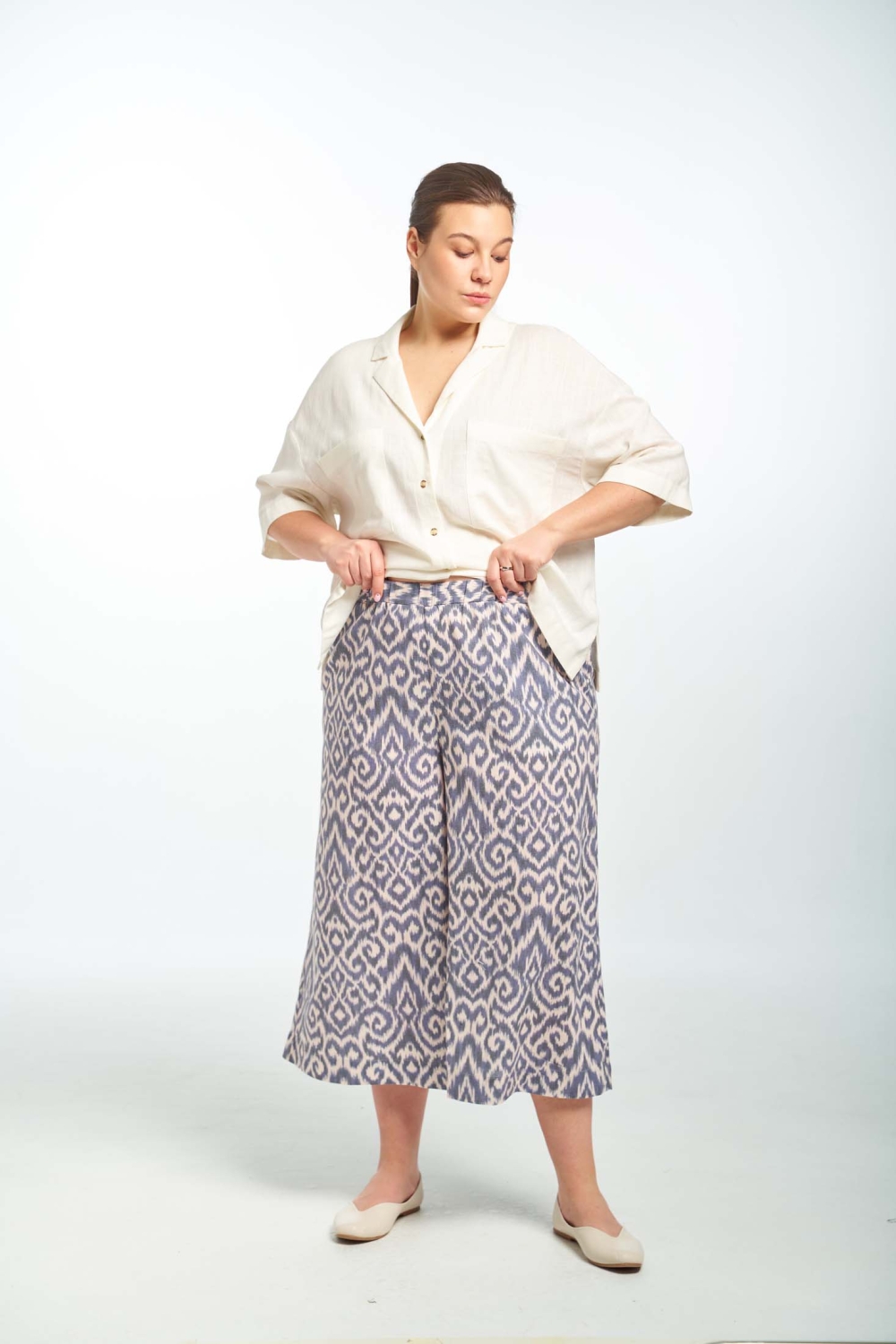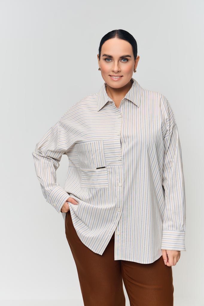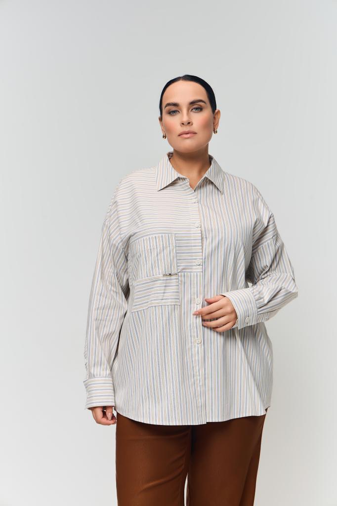 Женская бежево-серая в полоску классическая рубашка ПУНШ Терра (terra) - женская одежда больших размеров