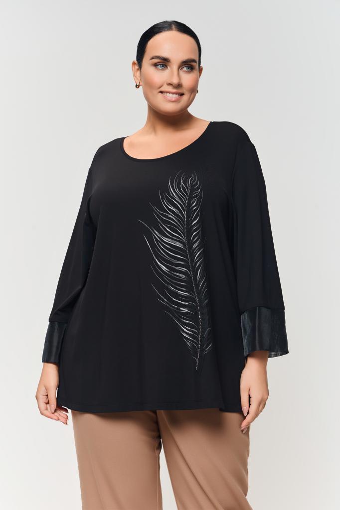 Описание: Женская черная с принтом трикотажная туника большого размера ФЕЯ Терра (Terra) - женская одежда больших размеров