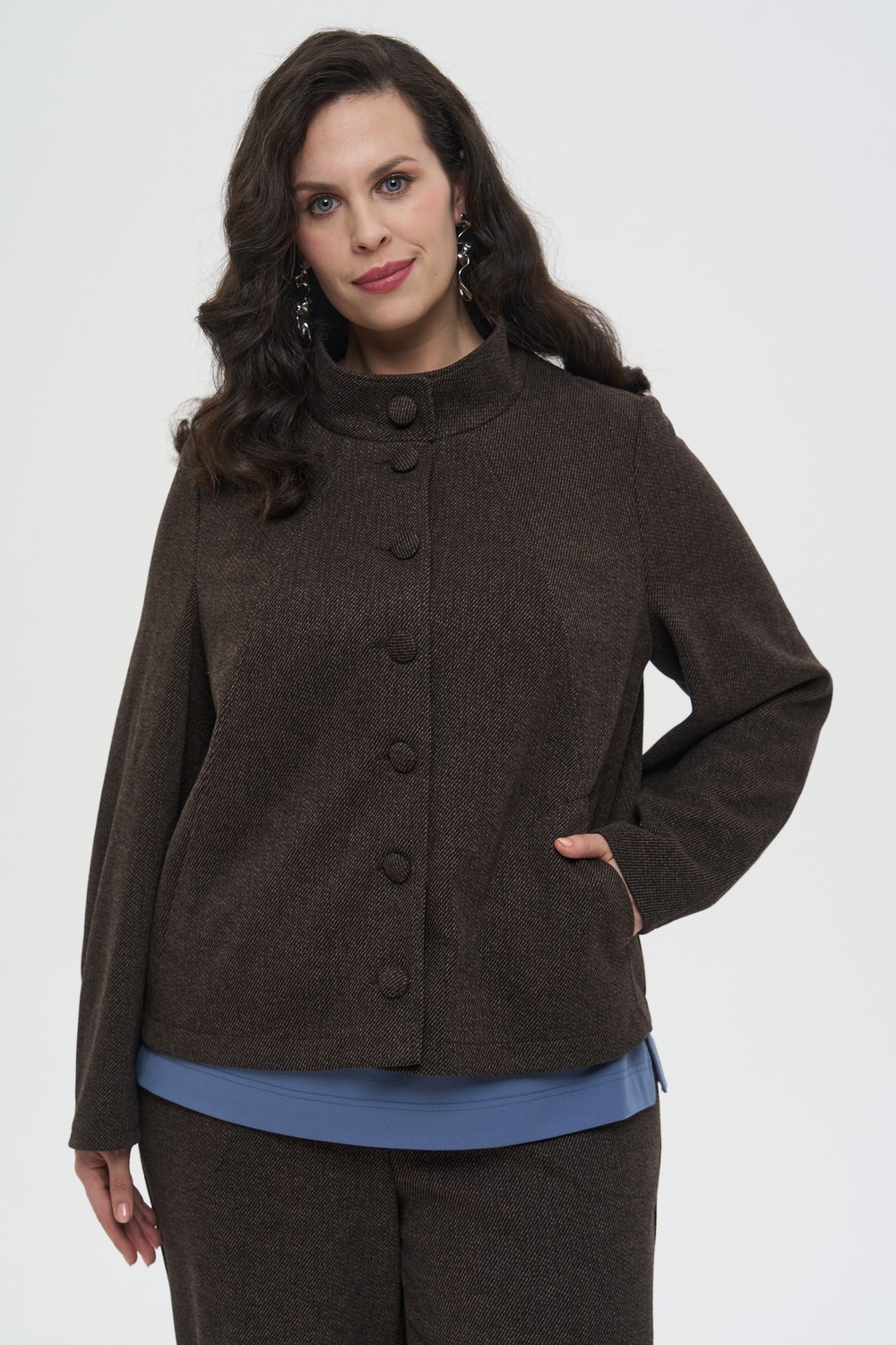 Женский коричневый укороченный трикотажный жакет ФОСТЕР Интикома (Intikoma) - одежда для полных женщин. Жакет из утепленного трикотажа в диагональный рубчик. Стильные комплекты можно собрать с брюками ВЕНГЕ 725521