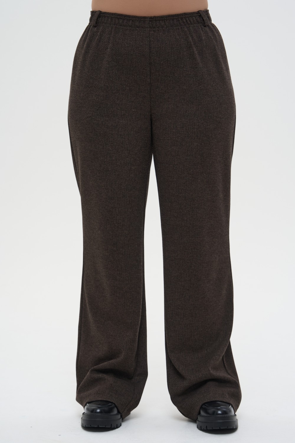 Женские коричневые прямые широкие брюки ВЕНГЕ Интикома (Intikoma) - одежда для полных женщин. Брюки выполнены из плотного теплого премиального трикотажа. Отличительной особенностью является диагональный рубчик, придающий ткани выразительную текстуру и визуальную глубину. Без застежки, пояс на эластичной резинке, шлевки на поясе. Стильный комплект можно собрать с жакетом ФОСТЕР 525509