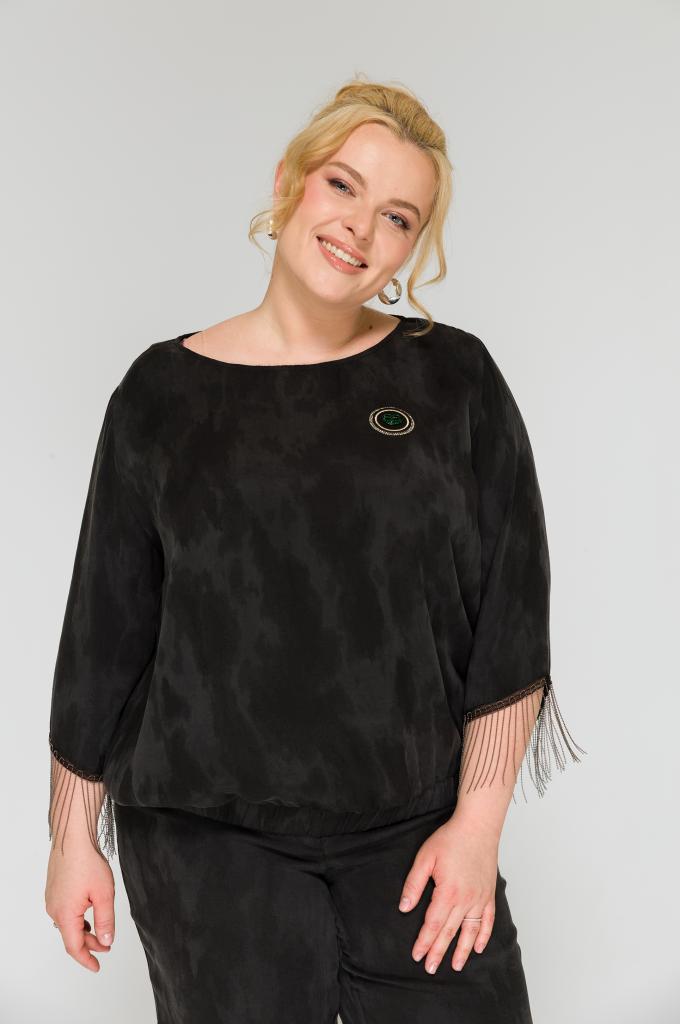 Описание: Женская черная нарядная фактурная блузка большого размера бренда Терра (Terra).