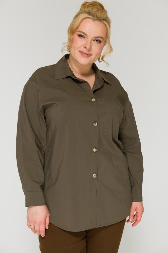 Женская классическая рубашка ЭРМИТАЖ бренда Терра (Terra) в цвете хаки - женская одежда больших размеров. Рубашка офисного делового стиля.
