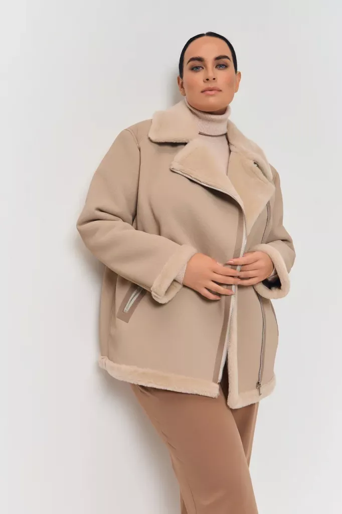 Женская осенняя бежевая тканевая куртка ОТТЕПЕЛЬ бренда Терра (Terra) - женская одежда больших размеров