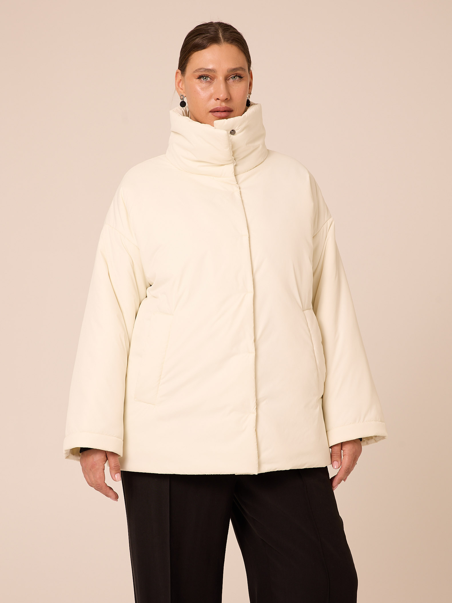 Женская демисезонная молочная куртка ANITA бренда Modress (Модресс) - верхняя одежда для полных женщин. Куртка прямого кроя со спущенным плечевым поясом. Воротник-высокая стойка. Рукава прямые, умеренно широкие. Боковые карманы прорезные с листочкой. Куртка длиной чуть ниже линии бедер. По низу изделия выполнена кулиска с регулируемой резинкой. Застегивается изделие на кнопки. Куртка выполнена из курточной ткани с водоотталкивающей пропиткой.