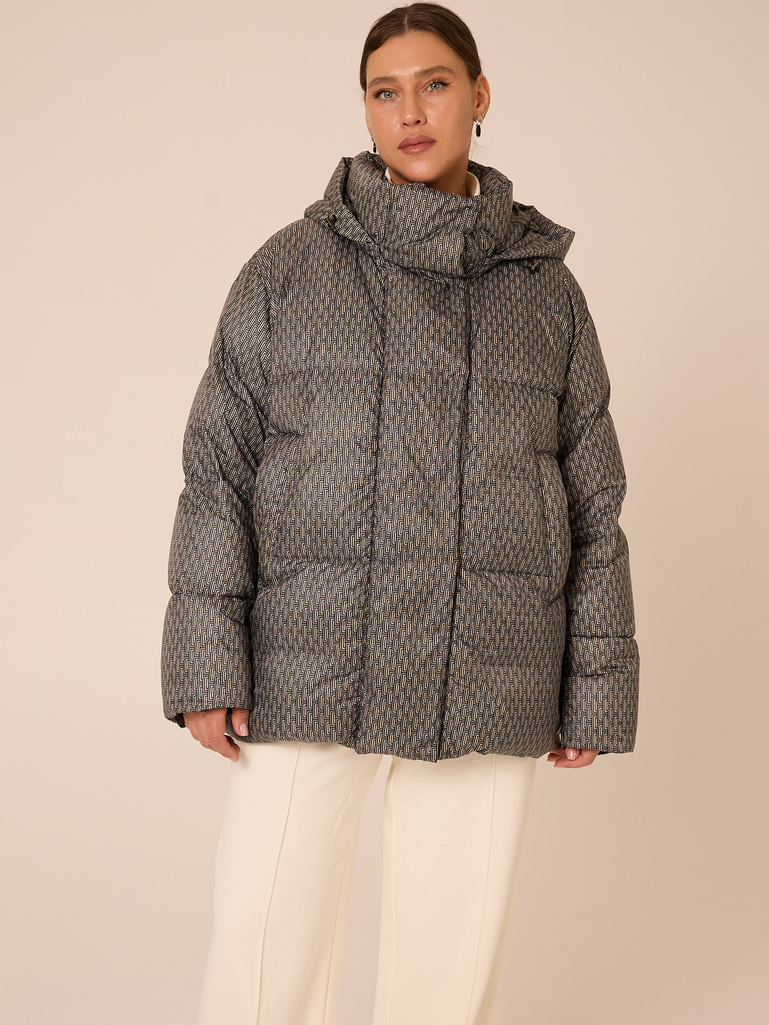 Женская зимняя бежевая пуховая куртка HATI бренда Modress (Модресс) - одежда для полных женщин. Куртка прямого кроя, со спущенным плечевым поясом. Воротник-пухлая стойка, капюшон съемный. Боковые карманы прорезные с листочкой. Есть внутренний накладной карман на подкладке. По низу изделия выполнена кулиска с регулируемой резинкой. Застегивается куртка на тракторную молнию, которая закрывается пухлой ветрозащитной планкой.