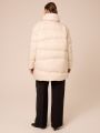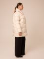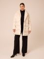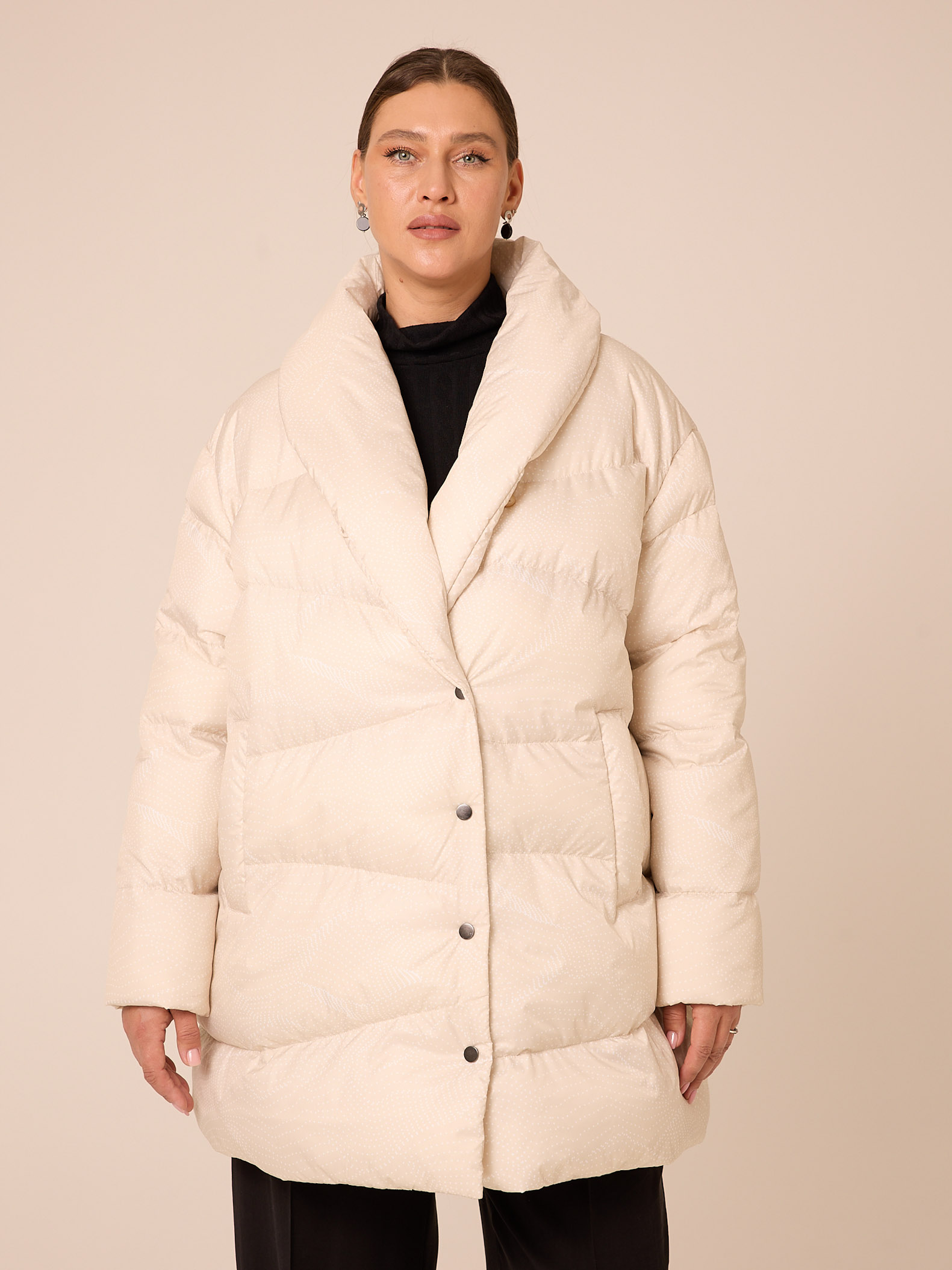 Женское молочное пальто еврозима LOLA бренда Modress (Модресс) -женская одежда больших размеров. Куртка А-образного силуэта, с шалевидным воротником. Длина изделия до середины бедра. Плечевой пояс спущенный. Боковые карманы прорезные с листочками. На куртке выполнена ассиметричная стежка. Застегивается изделие на кнопки. Выполнена из курточной ткани с водоотталкивающей пропиткой