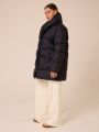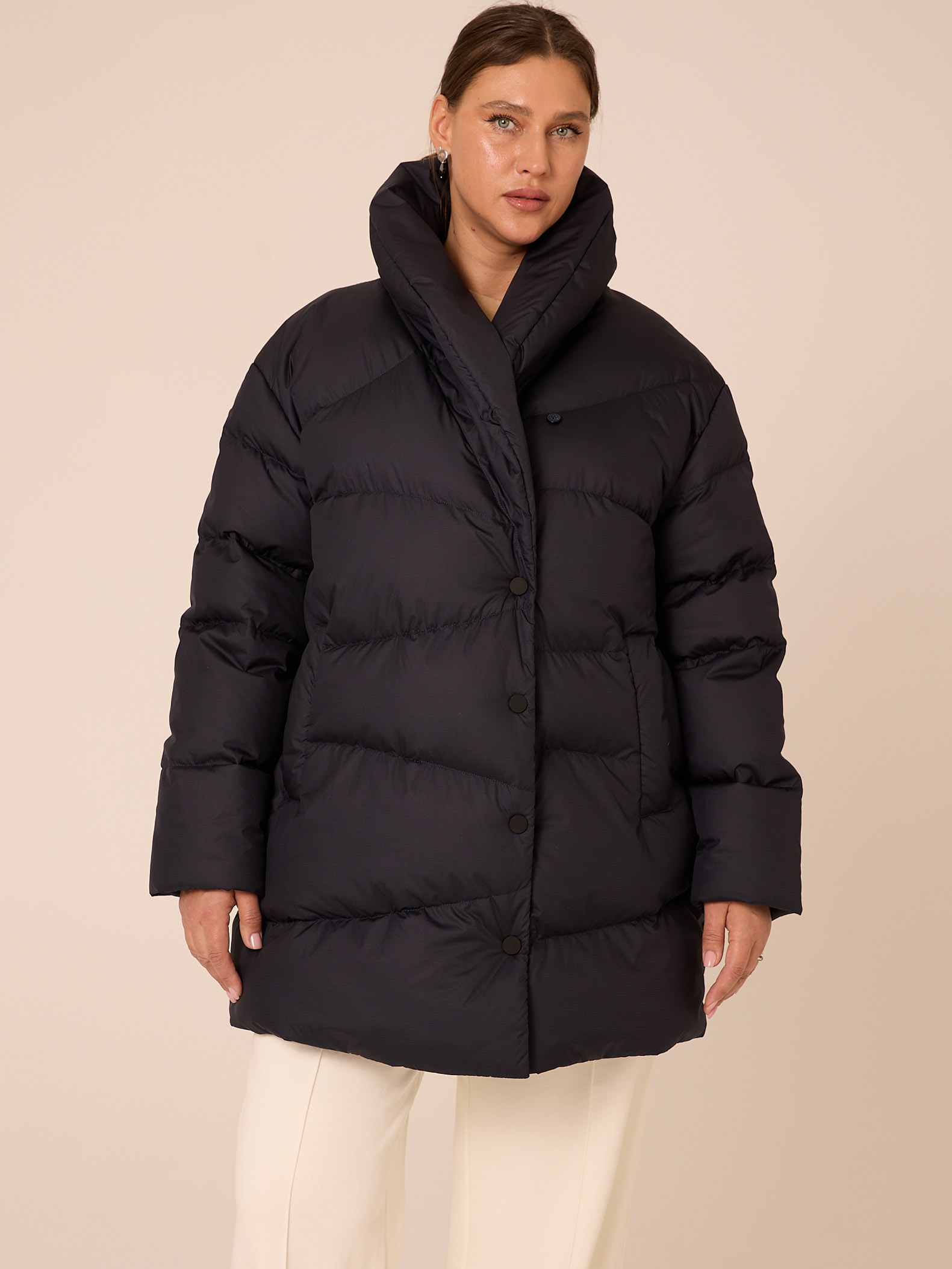 Женское синее пальто еврозима LOLA бренда Modress (Модресс) -женская одежда больших размеров. Куртка А-образного силуэта, с шалевидным воротником. Длина изделия до середины бедра. Плечевой пояс спущенный. Боковые карманы прорезные с листочками. На куртке выполнена ассиметричная стежка. Застегивается изделие на кнопки. Выполнена из курточной ткани с водоотталкивающей пропиткой