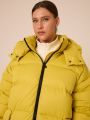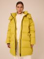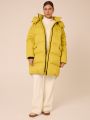 Женская желтая зимняя пуховая куртка GABRIEL бренда Modress (Модресс) - одежда для полных женщин. Куртка свободного прямого кроя, длиной до колен. Воротник-пухлая стойка, капюшон съемный, пристегивается к воротнику на кнопки. Плечевой пояс спущен. Рукава выполнены с трикотажными манжетами-напульсниками внутри. Боковые карманы с клапанами, выполнены в горизонтальном подрезе. Есть внутренний накладной карман на подкладке. Изделие застегивается на широкую, тракторную молнию. По низу изделия выполнена кулиска с регулируемой резинкой.