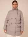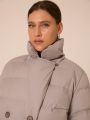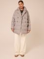 Описание: Женская светло-серая пуховая куртка еровзима LUI бренда Modress (Модресс) - одежда для полных женщин. Куртка прямого кроя, длиной ниже линии бедер. Плечевой пояс немного спущен. Воротник типа английского, с лацканами, застегивается до верха. Рукава двухшовные. Боковые карманы с клапанами, выполнены в горизонтальном подрезе. Нагрудная вытачка обеспечит хорошую посадку. Есть внутренний накладной карман на подкладке. Куртка двубортная, застегивается на петли и пуговицы и дополнительные потайные кнопки.