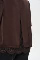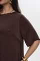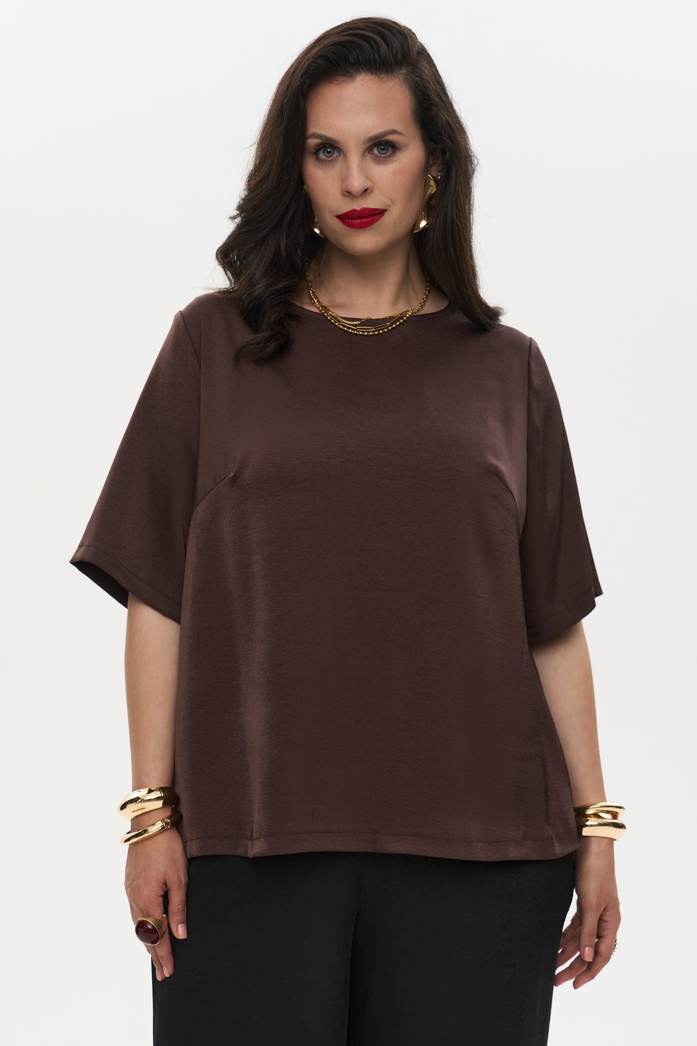 Женская нарядная коричневая с кружевом блузка ВАЛЕРИЯ артикул 825802 бренда Intikoma (Интикома) - женская нарядная одежда больших размеров. Модель свободного силуэта, с короткими рукавами и круглым вырезом горловины. Нагрудные вытачки обеспечивают посадку по фигуре. Спинка изделия имеет центральный шов и разрез, декорированный кружевной вставкой. Кружево по низу спинки немного выступает за край основной ткани, создавая эффектный акцент.