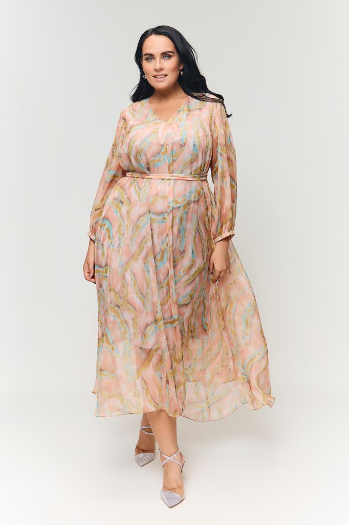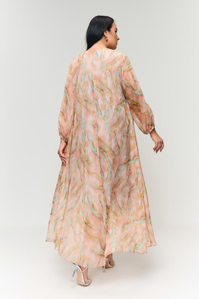 Женское шифоновое нарядное коралловое макси платье большого размера ВЕЕР бренда Terra (Терра) - женская одежда больших размеров