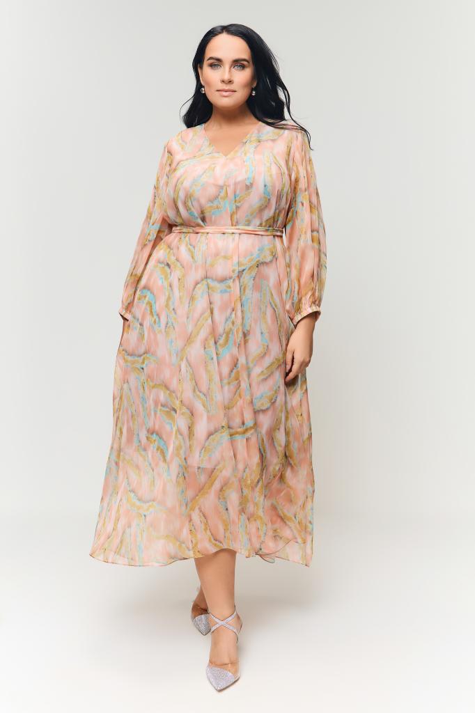 Описание: Женское шифоновое нарядное коралловое макси платье большого размера ВЕЕР бренда Terra (Терра) - женская одежда больших размеров