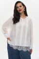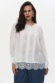 Женская нарядная белая кружевная блузка большого размера ФАБИО бренда Intikoma (Интикома) артикул 825804 - женская одежда больших размеров. Женская блузка свободного покроя выполнена из плательно-блузочной ткани, Округлый вырез горловины. Длинные втачные рукава завершаются аккуратными манжетами с застежкой на пуговицу. Комфортная кружевная подкладка деликатно выглядывает из-под подола, создавая многослойный эффект.