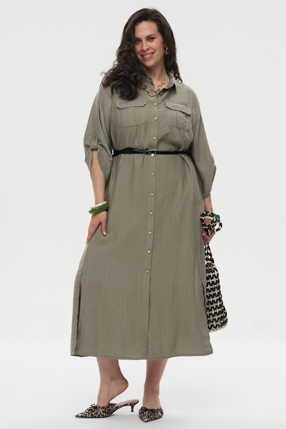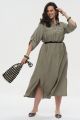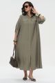 Женское миди платье-рубашка большого размера в цвете хаки САФАРИ артикул 426021 бренда Intikoma (Интикома) - женская одежда большого размера. Платье-рубашка свободного прямого кроя, выполнено из мягкого смесового полотна с благородной жатой фактурой, которая обеспечивает превосходный комфорт в жаркую погоду и практичность в уходе.