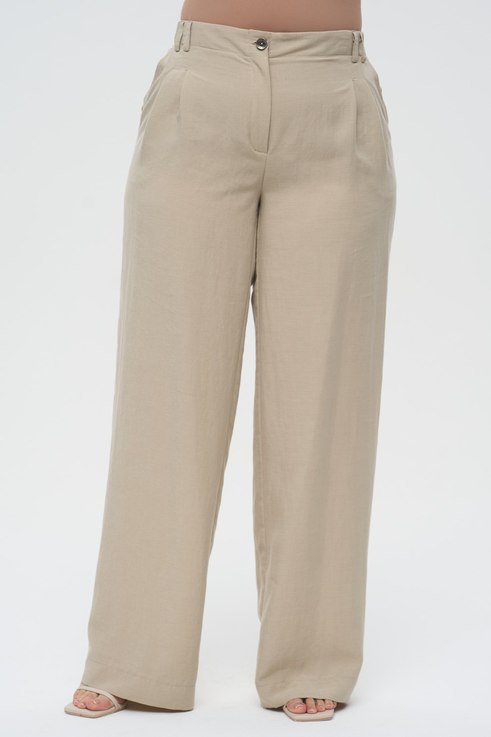 Женские бежевые широкие брюки-палаццо большого размера АНТОНИО артикул 726031 бренда INTIKOMA (Интикома) - одежда для полных женщин. Модель выполнена из премиального смесового полотна, высокая комфортная посадка на талии. Брюки являются частью капсульной коллекции и составляют безупречный ансамбль с жакетом Бенита артикул 526012 или жилетом Гонсалес артикул 526013